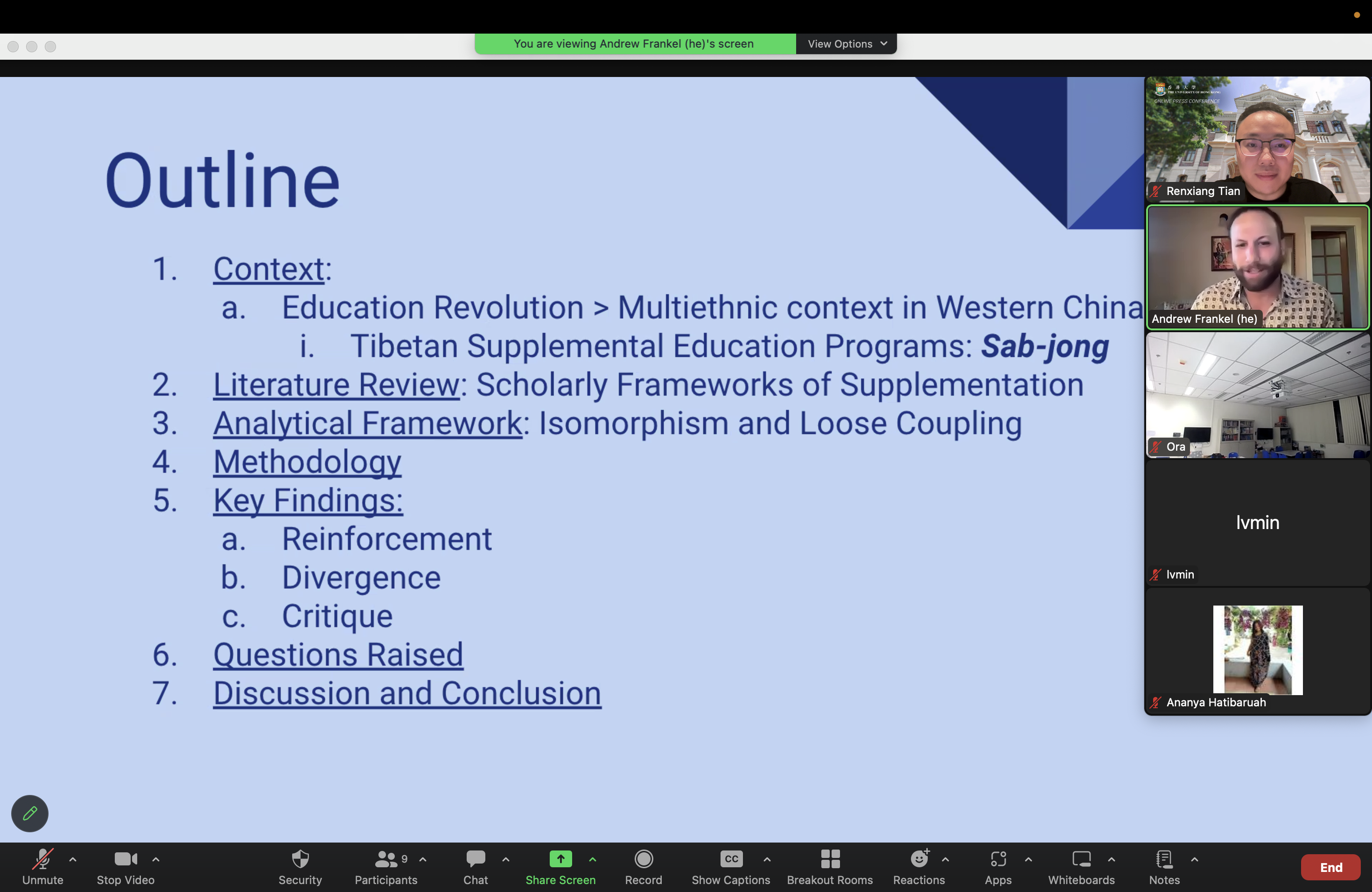 Drawing on his seven years of teaching experience in Western China, Dr. Frankel presented his research on the topic of ‘Rethinking Supplementation: A Study of Amdo Tibetan Educators in Qinghai, China.’ His findings challenge the conventional understanding of supplemental education programs and highlight their potential to promote diversity and critical engagement with mainstream education.
