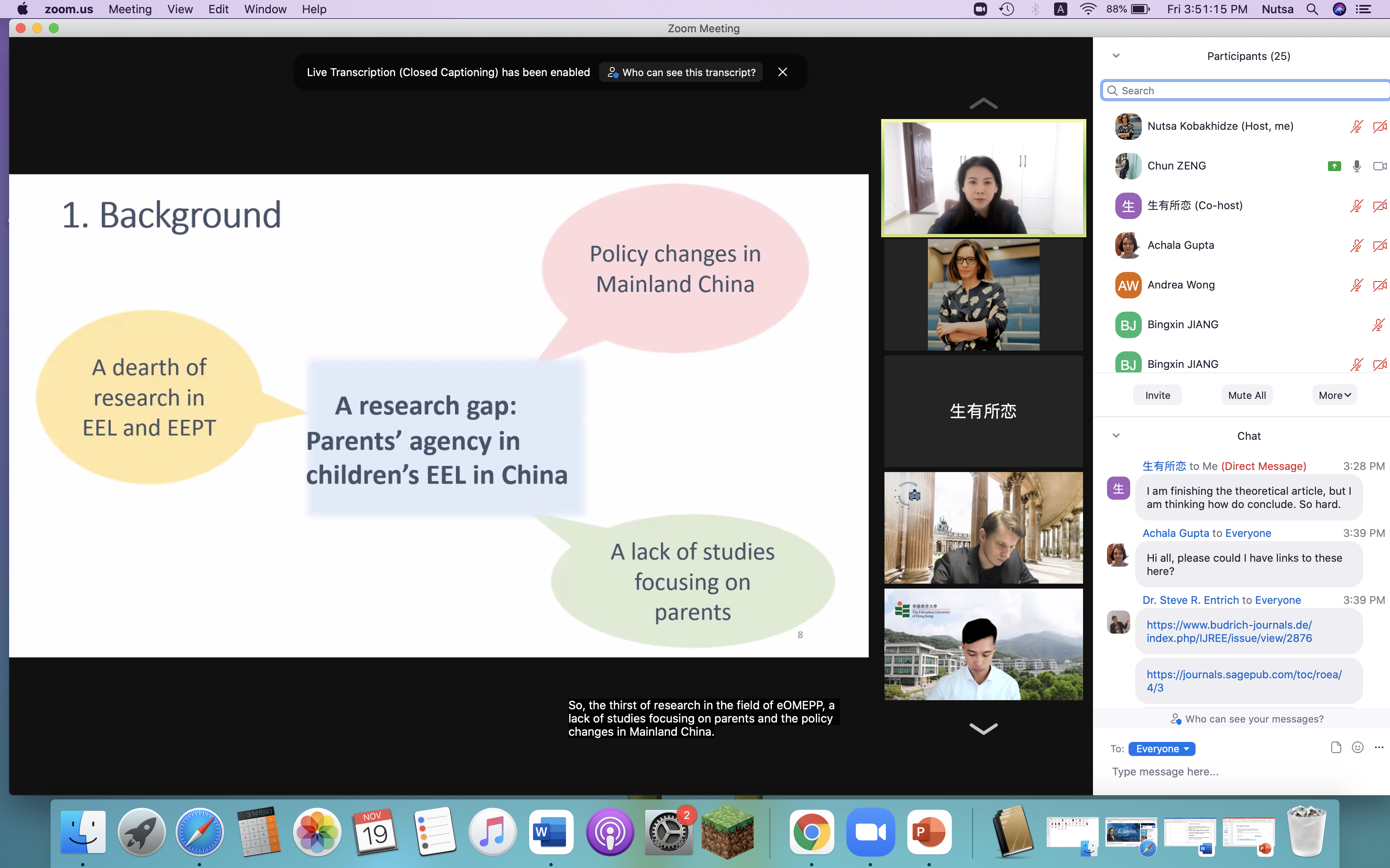 Miss Gwen Zeng from the Education University of Hong Kong presented at the Shadow Education SIG on November 19. Gwen is a PhD student researching shadow education in China under the supervision of Dr. Kevin Yung. Her thesis is entitled as “Tutoring or not tutoring: Understanding parents’ agency in children’s early English learning in China”. More than 25 members of the shadow education SIG attended the presentation from Hong Kong, Mainland China, Germany and the United Kingdom.